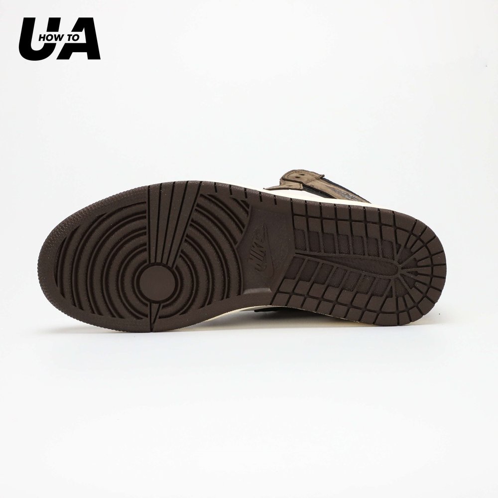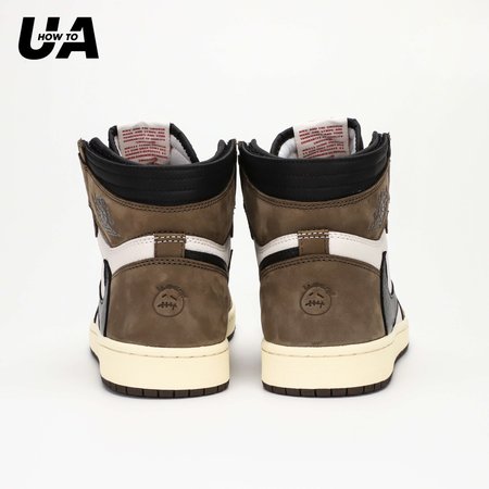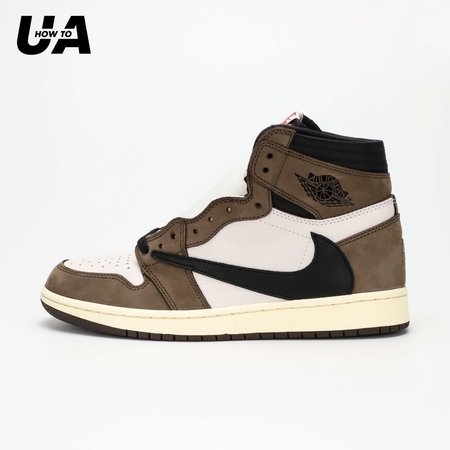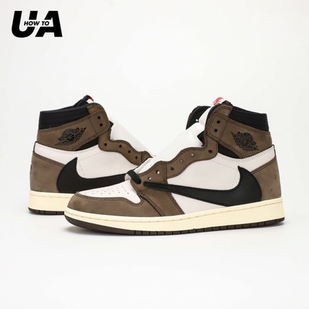 Grab a pack of coffee beans to match the Jordan 1 Retro High Travis Scott. This AJ1 comes with a brown upper plus white accents, black Nike "Swoosh", sail midsole, and a brown sole.